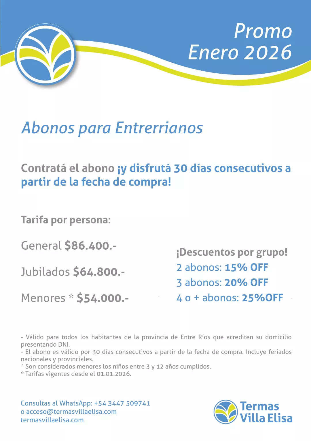 Los residentes de la provincia de Entre Ríos tienen la posibilidad de sacar los Abonos para Entrerrianos, los cuales les permitirán disfrutar del complejo durante 30 días consecutivos a partir de la fecha de compra.