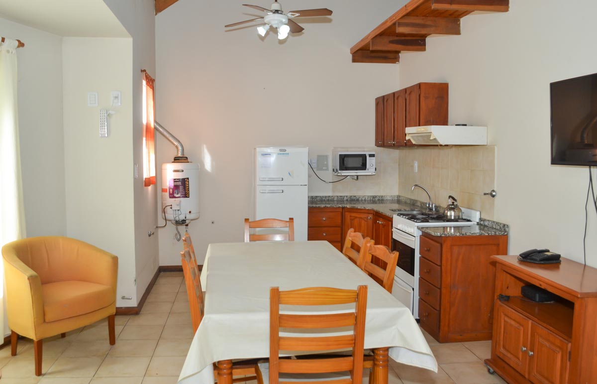 Bungalow 2 CARACTERÍSTICAS Ambientes: 3 Capacidad: 4 personas Disposición:1 Dormitorio con 1 Cama Matrimonial; 1 dormitorio con 2 camas simples; sala de estar/comedor; 1 baño. Compartir: