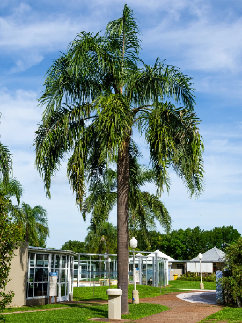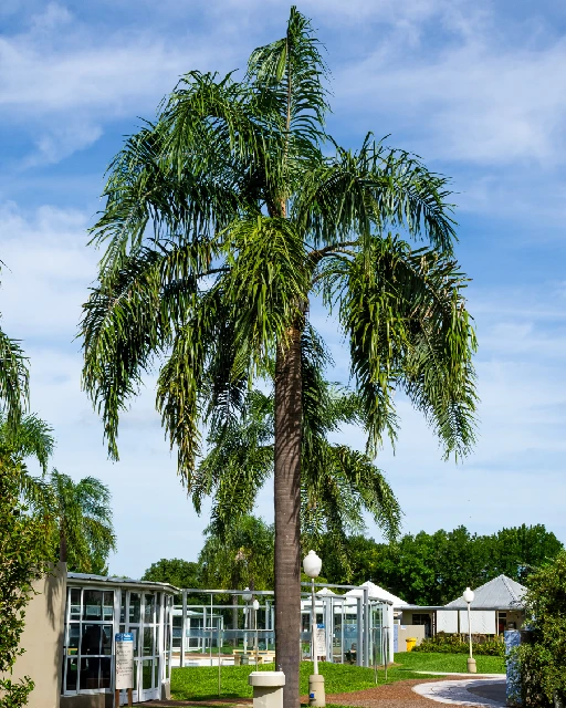 - Hábito: Palmera solitaria de porte elegante, con un único tronco delgado y erguido. El aspecto general es muy ornamental.