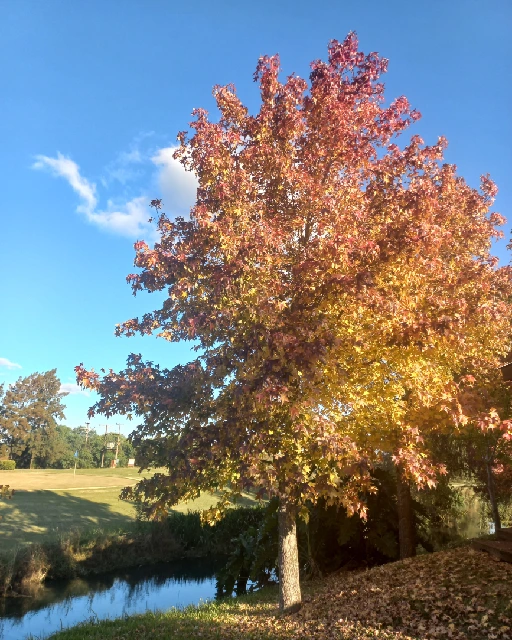 - Follaje: Caducifolio. Sus hojas son grandes (12-25 cm), lobuladas, con lóbulos puntiagudos. En otoño se tornan de un intenso color rojo escarlata, una de sus características más llamativas.
