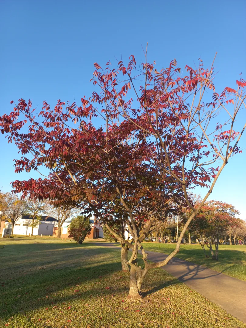- Follaje: Genera semisombra con sus hojas alternas y pequeñas, dispuestas en penachos terminales.