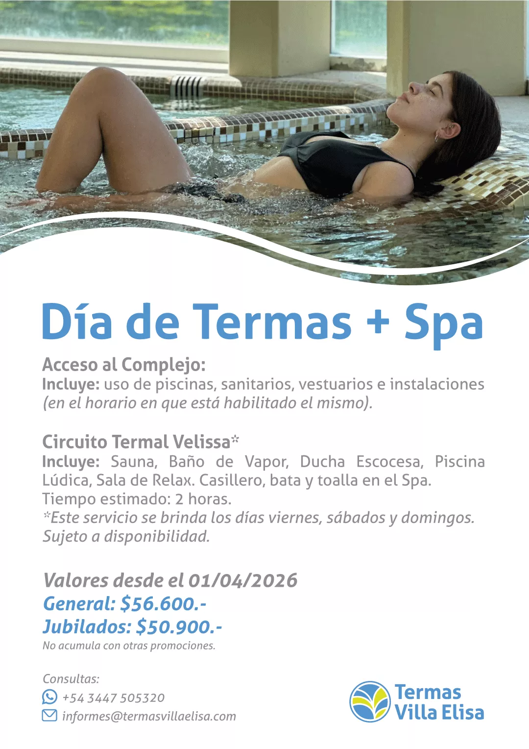 Incluye: Sauna, Baño de Vapor, Ducha Escocesa, Piscina Lúdica, Sala de Relax. Casillero, bata y toalla en el Spa.