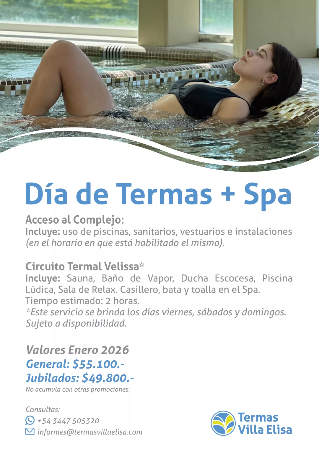 Incluye: uso de piscinas, sanitarios, vestuarios e instalaciones (en el horario en que está habilitado el mismo).